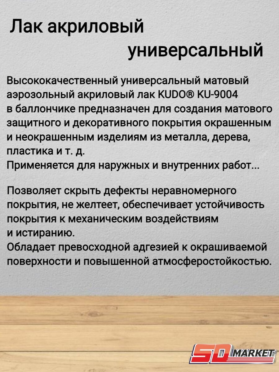 Лак аэрозольный акриловый kudo 520мл прозрачный матовый информация: