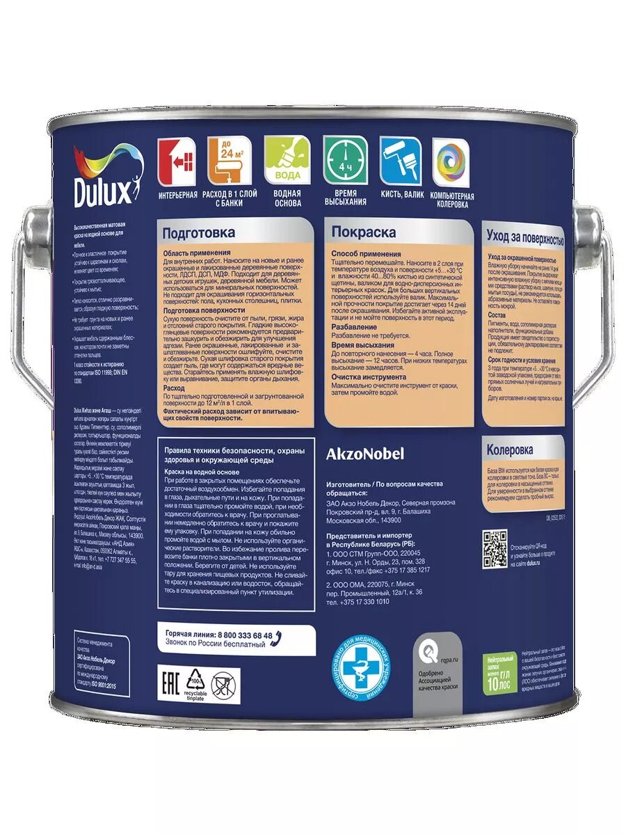 Dulux / Дюлакс Легко Обновить - Мебель и Дерево матовая износостойкая краска на водной основе (2л)