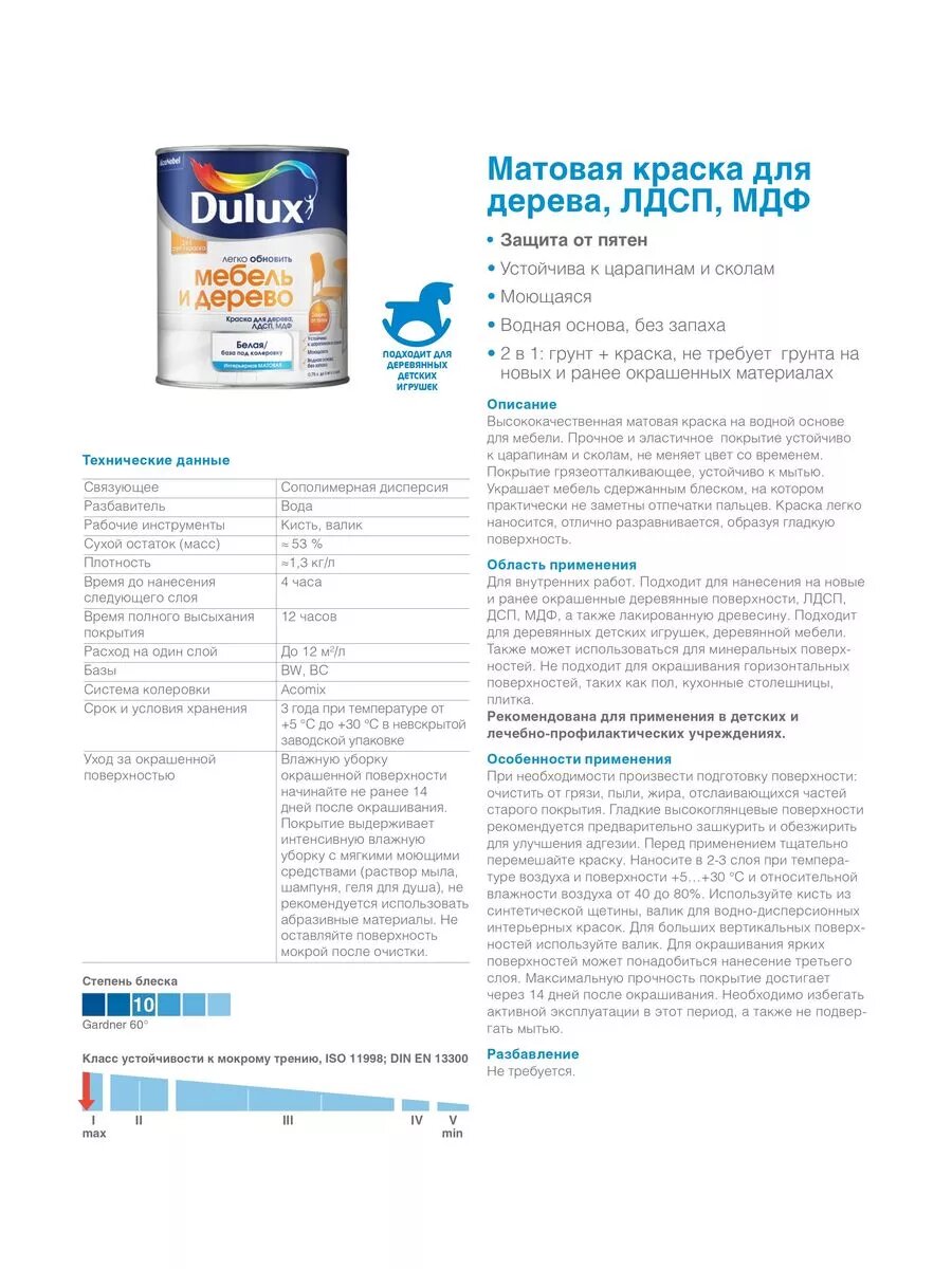 DULUX легко обновить мебель И дерево краска грунт для дерева, ЛДСП, МДФ, матовая (0,75л)