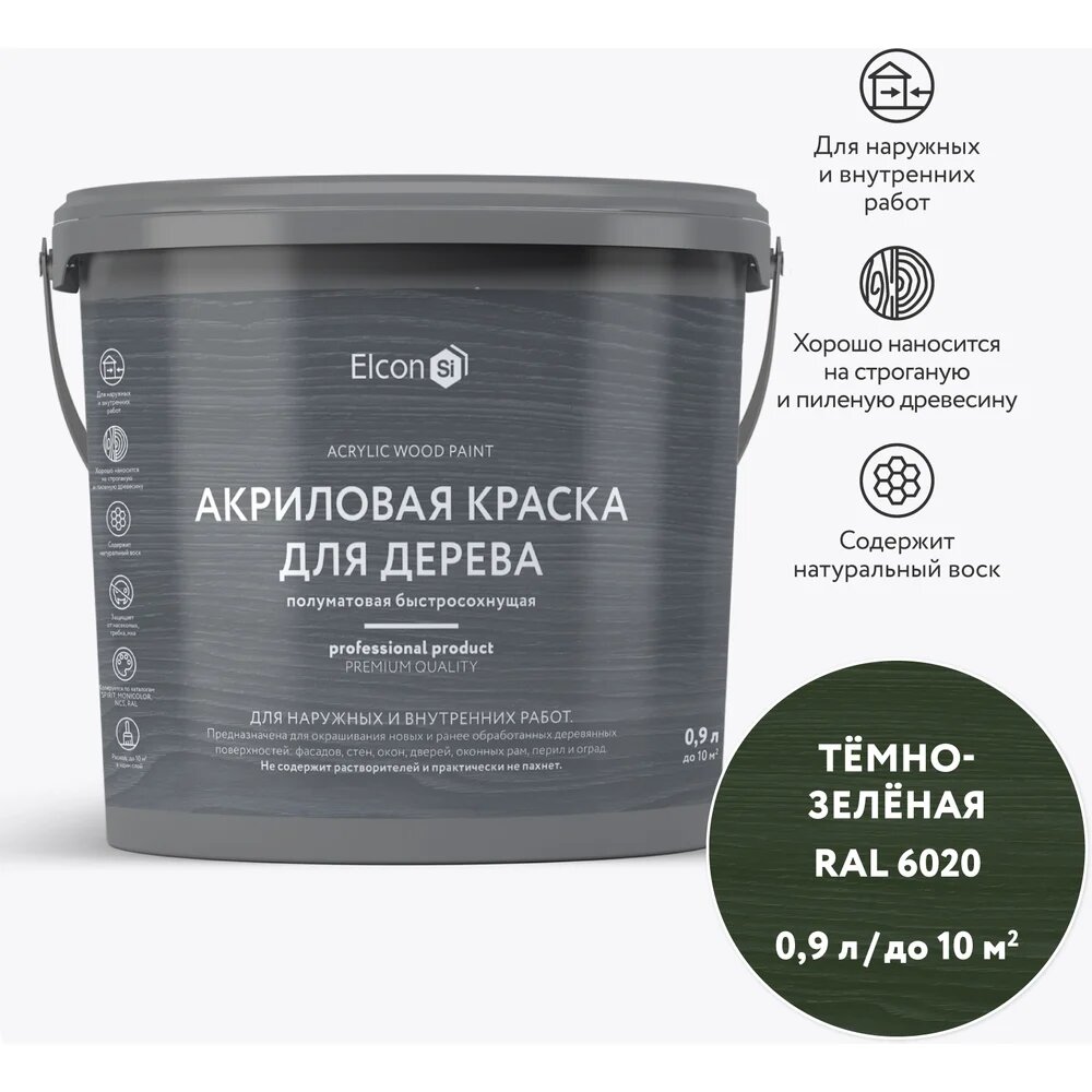 Краска для дерева Elcon акриловая темно-зеленая RAL 6020 0,9 л 00-00750345 информация: