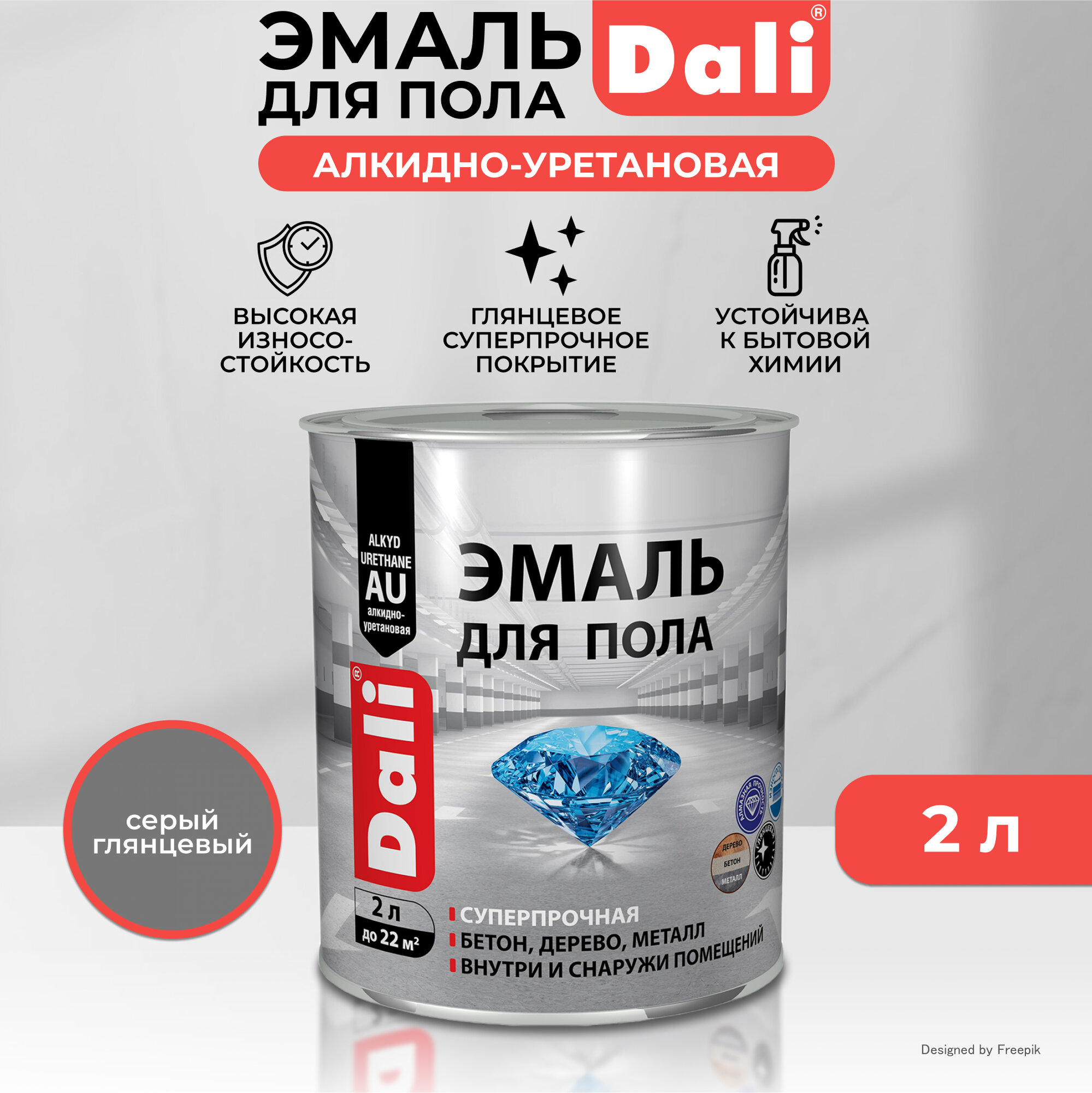 Эмаль для пола Dali, алкидно-уретановая, глянцевая, серая, 2 л 1 872 ₽