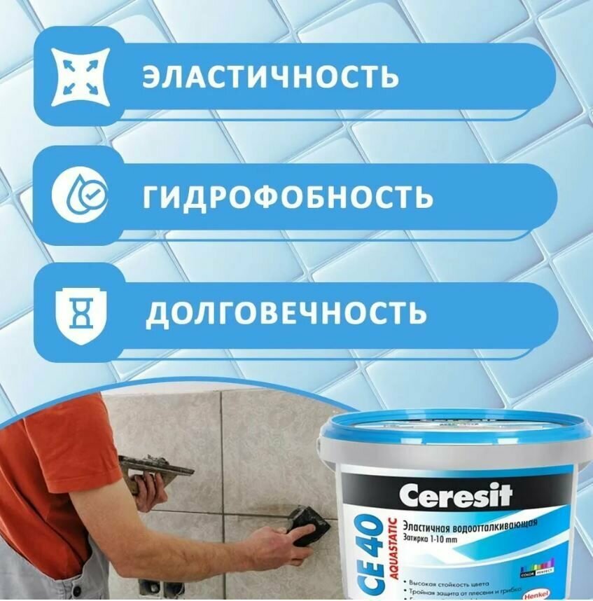 Затирка для Швов Эластичная Ceresit CE 40 Aquastatic 2кг Серый 04 до 10мм Водоотталкивающая с Антигрибковым Эффектом / Церезит СЕ 40. 700 ₽