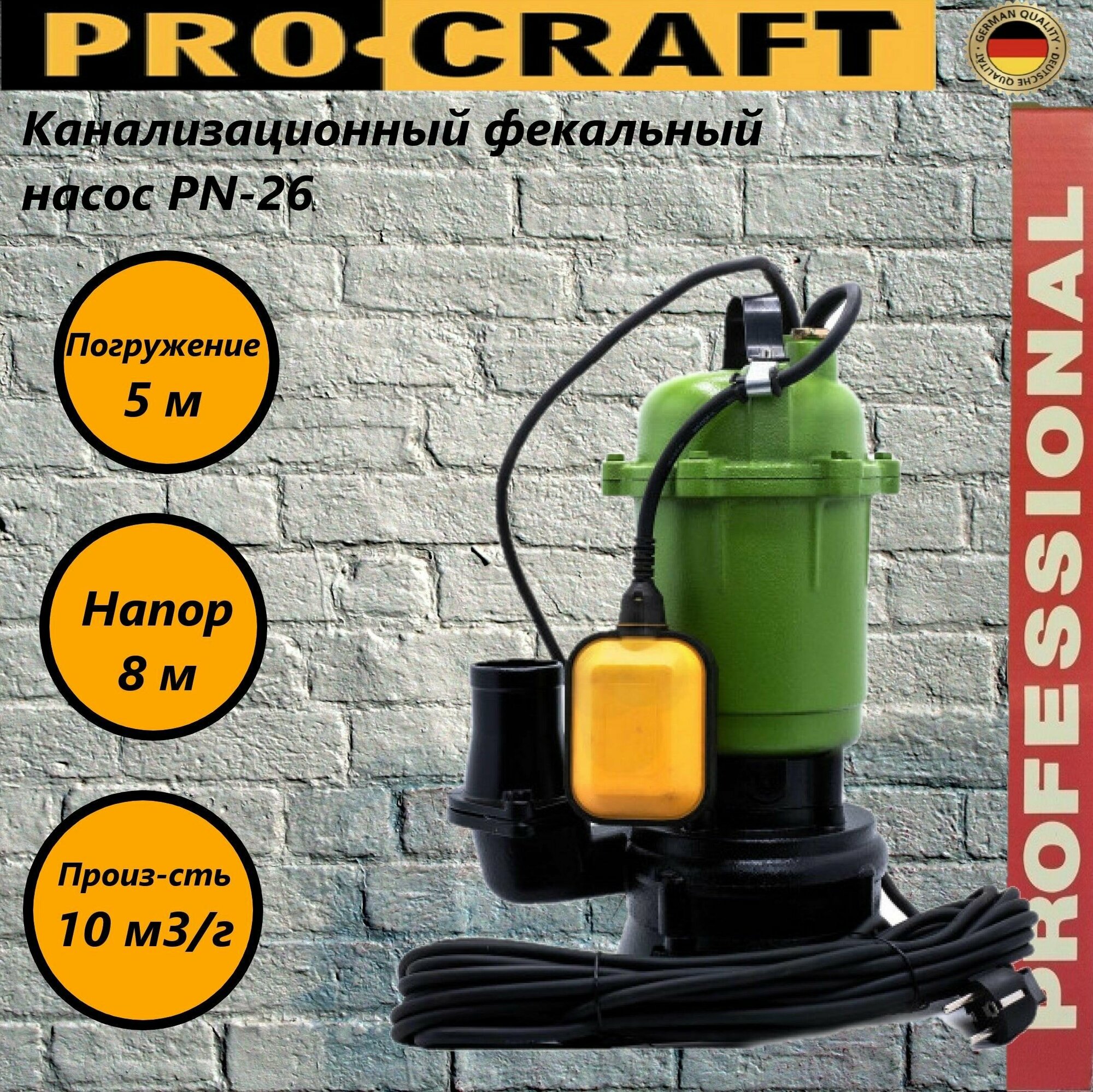 Канализационный фекальный насос с поплавковым выключателем Procraft PN-26 ( 10000 л/мин, погружение 5м, напор 8м ) информация: