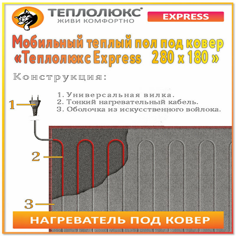 Мобильный электрический нагреватель под ковер Теплолюкс Express, 280х180 см, 560 Вт информация: