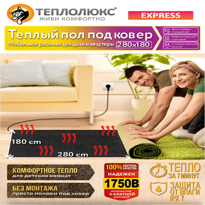 Отзывы на Мобильный электрический нагреватель под ковер Теплолюкс Express, 280х180 см, 560 Вт