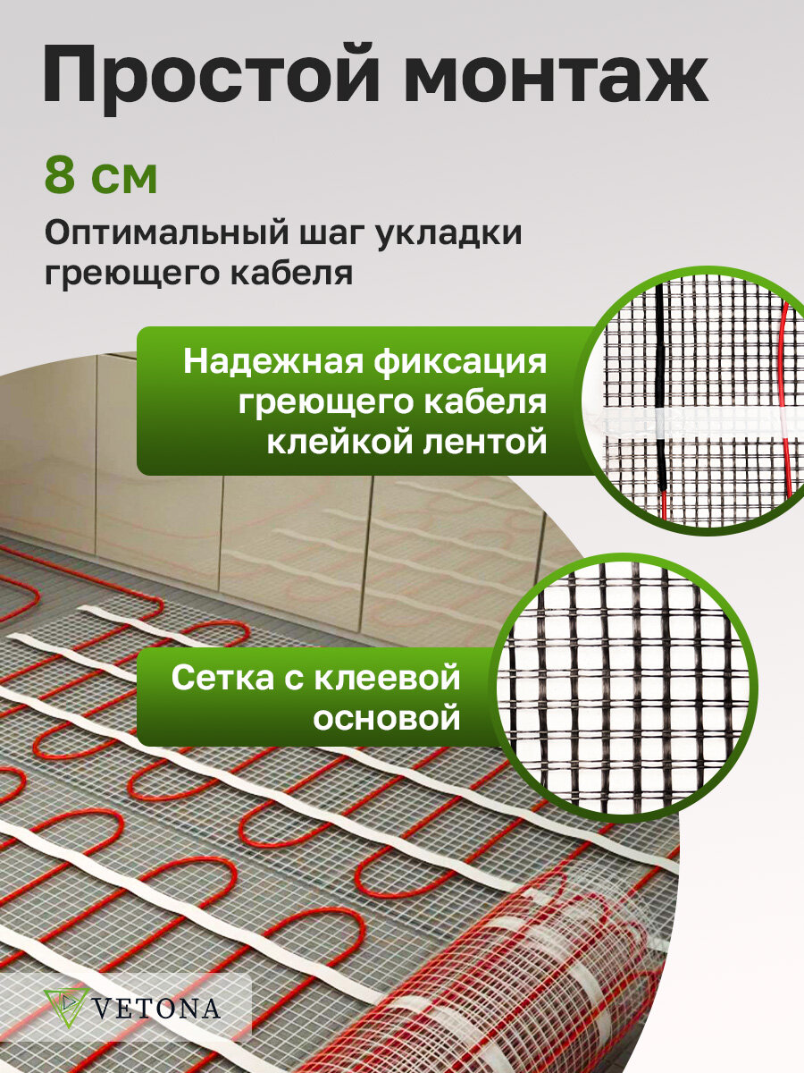 Теплый пол Vetona Mat 600 Вт/4,0 м2 информация: