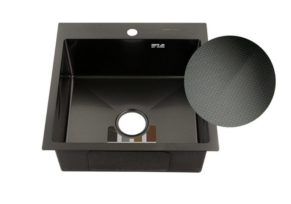 Отзывы на Кухонная мойка врезная из нержавеющей стали Fabia Profi 50503DG Декор 50x50 см Глубина 20см, Графит текстурная матовая поверхность, сифон и коландер в комплекте