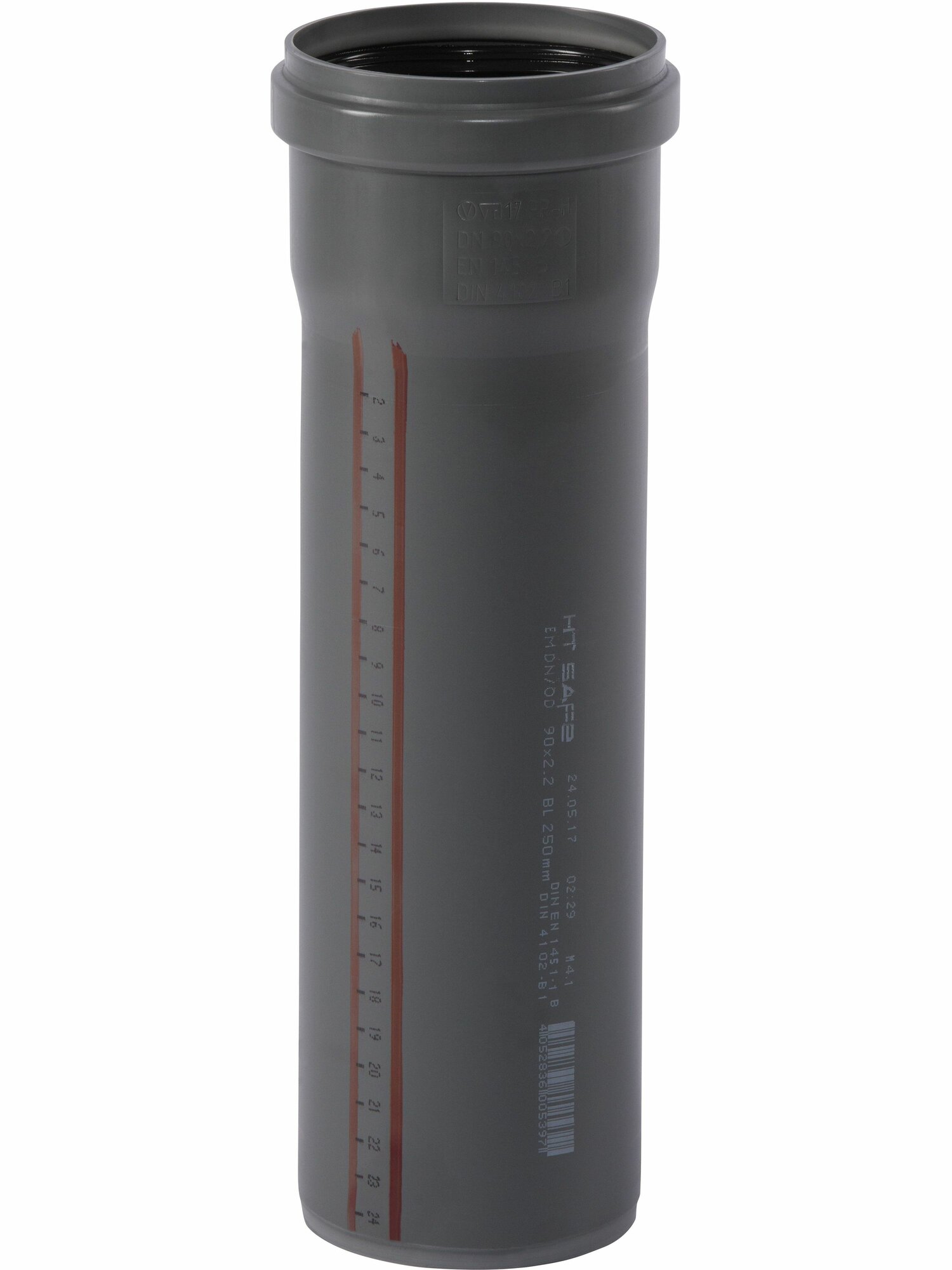 | Дополнительная информация | устойчивость к воздействию агрессивных сточных вод pH 2 - pH 12, огнестойкость по DIN 4102 класс B1; цвет RAL 7037; на трубах нанесена сантиметровая линейка для удобства монтажа; диаметр раструба 105 мм, длина раструба 58 мм |