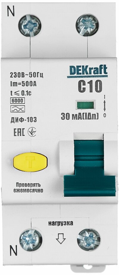 Автомат дифференциальный Dekraft ДИФ-103 (16228DEK) 10А 30 мА 1P+N тип A 6 кА информация:
