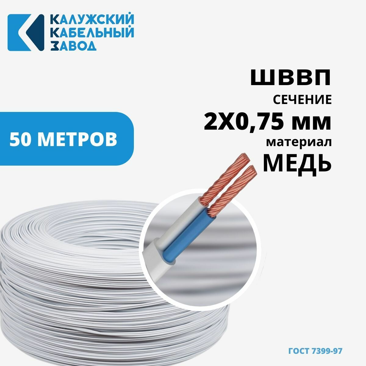 Провод ШВВП 2х0,75 ГОСТ Калужский Кабельный Завод (Белый) 50 метров