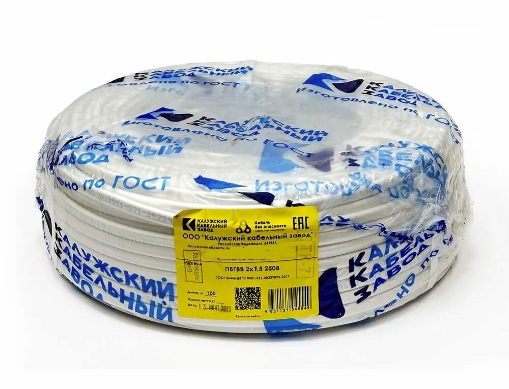 Провод пбгвв 2х1,5 ГОСТ Калужский Кабельный Завод (Белый) 100 метров 7 800 ₽