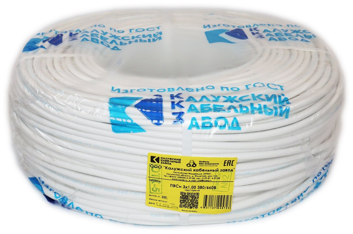 Провод ПВС 3х1,0 ГОСТ Калужский кабельный завод. Белый. 125 метров