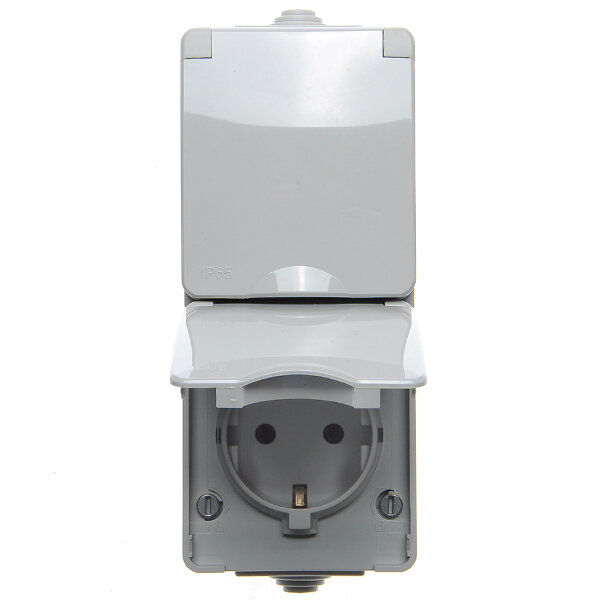 | Дополнительная информация | Блок 1-клавишный выключатель и розетка ЭРА Эксперт IP54 вертикальный с/з серый |