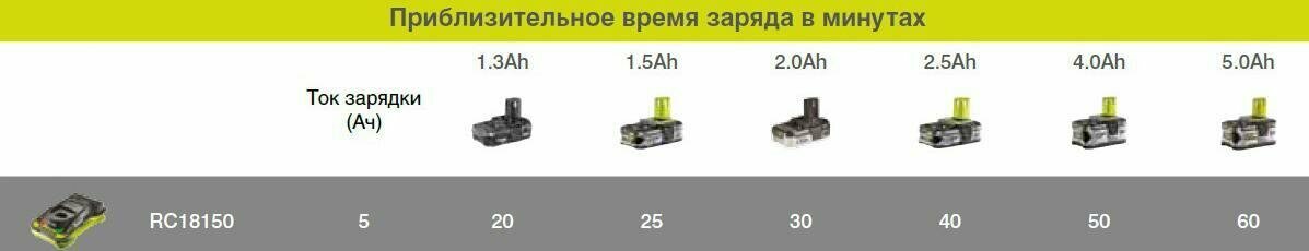 Зарядное устройство Ryobi RC18-150 ONE+, 18 V, Li-Ion информация: