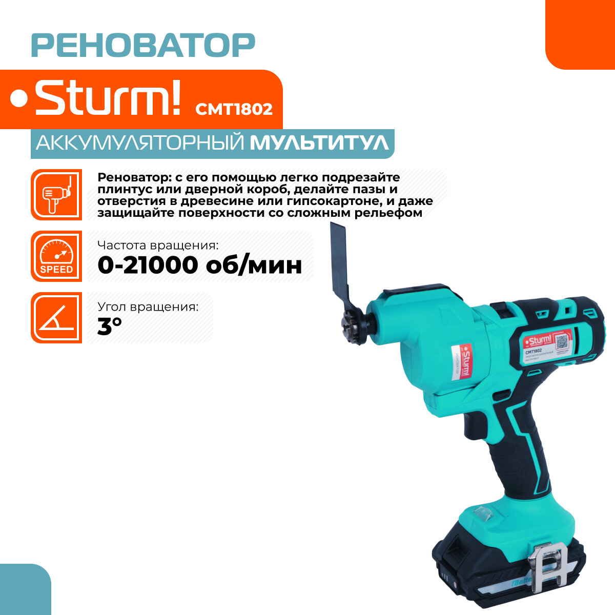 Аккумуляторный мультитул Sturm! CMT1802 1BatterySystem шуруповерт/реноватор/сабельная пила/дельташлифмашина