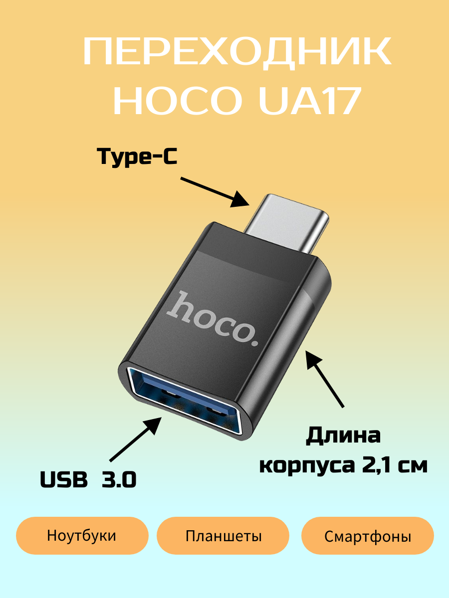 10 цен на Адаптер Hoco UA17 USB male to Type-C female, черный