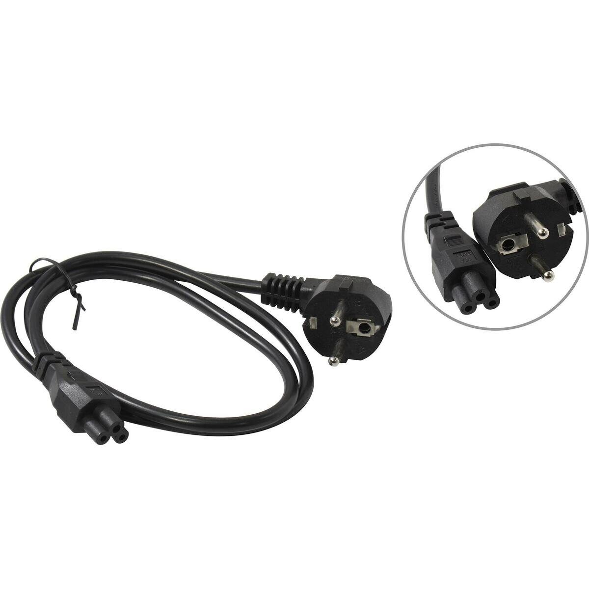 Кабель питания для ноутбука S22 угловая C5 клевер Штепсель 3*1.0мм 220в 10А - 1.8м чёрный