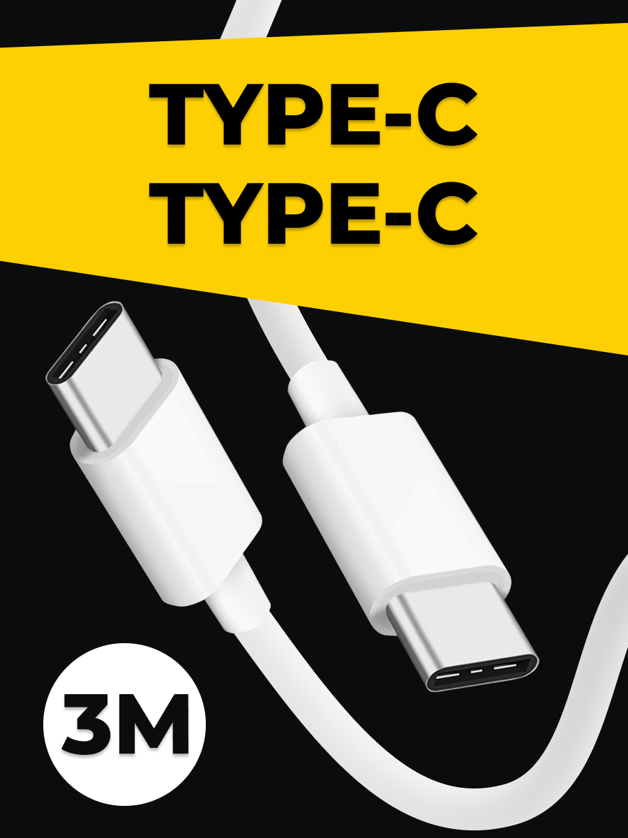 10 цен на Кабель (3 метра) Type-C - Type-C / Провод белый для зарядки / Тайп Си