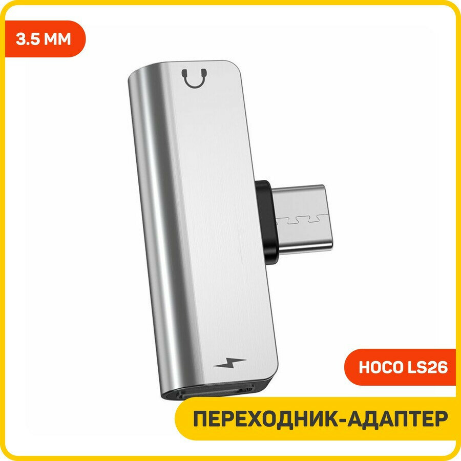 10 цен на Адаптер Hoco LS26 Type-C на 3.5мм, зарядка и звук, (серебро)