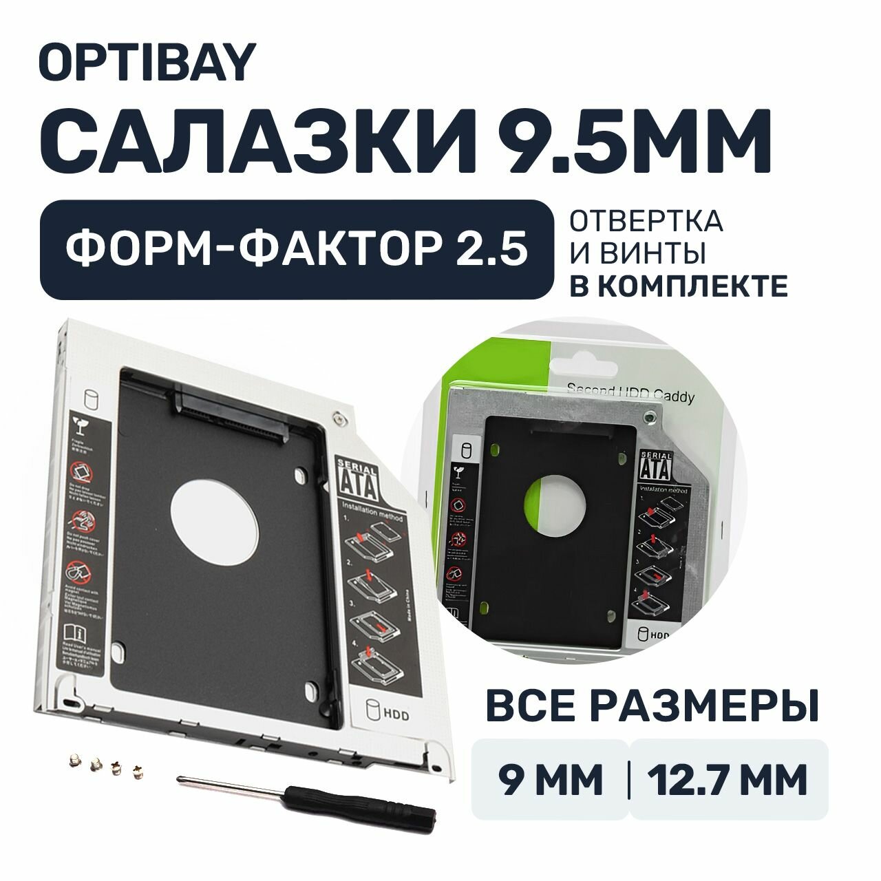 Салазки для ноутбука, Optibay, Оптибей 9,5 мм, переходник SATA, адаптер для HDD SSD, металлические, для привода информация: