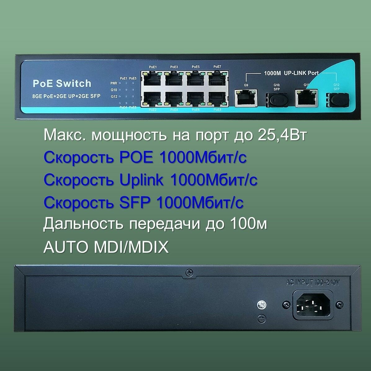 Отзывы на YDA Коммутатор POE свитч с 8POE 1000Мбит/с +2Uplinк 1000 Мбит/с + 2 SFP портов, WatchDog, бюджет 120 Ватт, грозозащита, бирюзовый