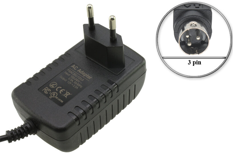 Адаптер (блок) питания 12V, 2.5A - 3A, 3pin (PSAC30U-120L6, PSAC30U-120L6D-R) встр. вилка, для Datalogic Magellan 9800i информация: