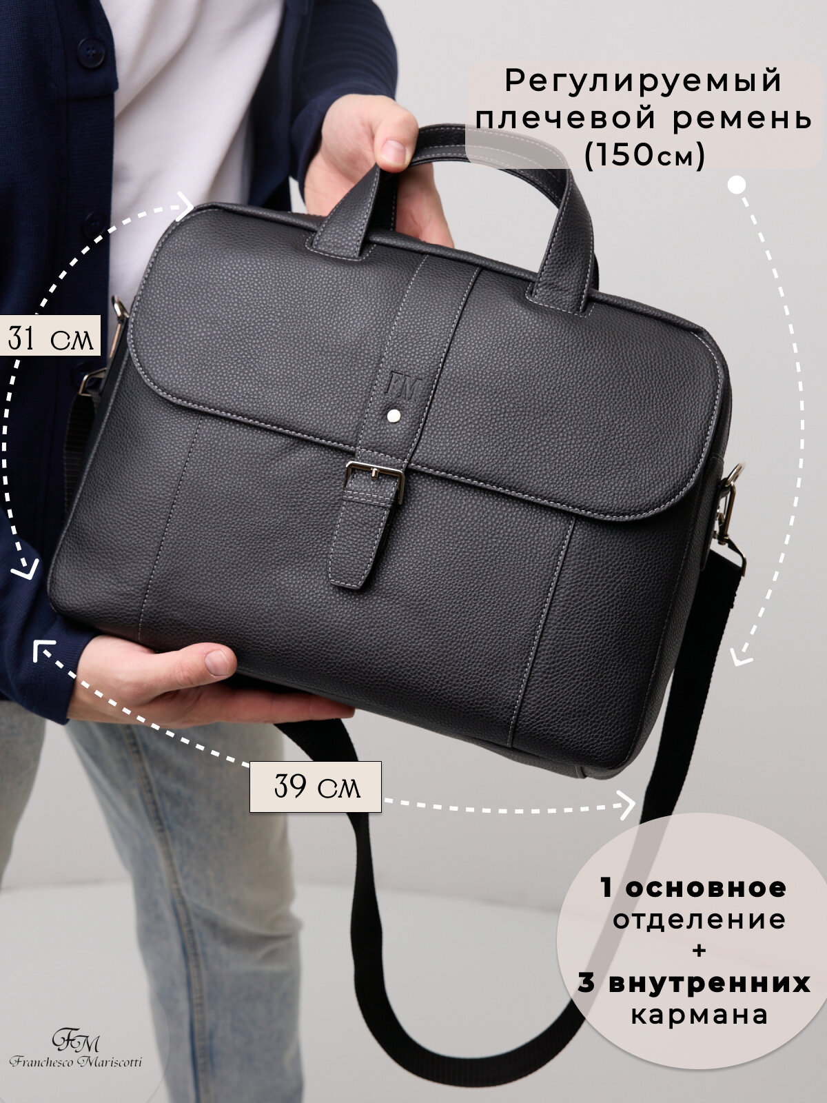 10 цен на Портфель Franchesco Mariscotti, фактура зернистая, черный