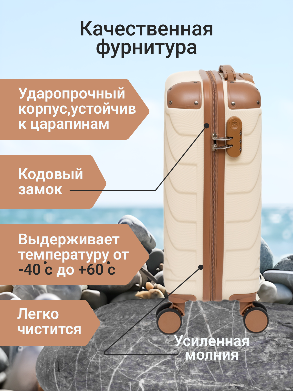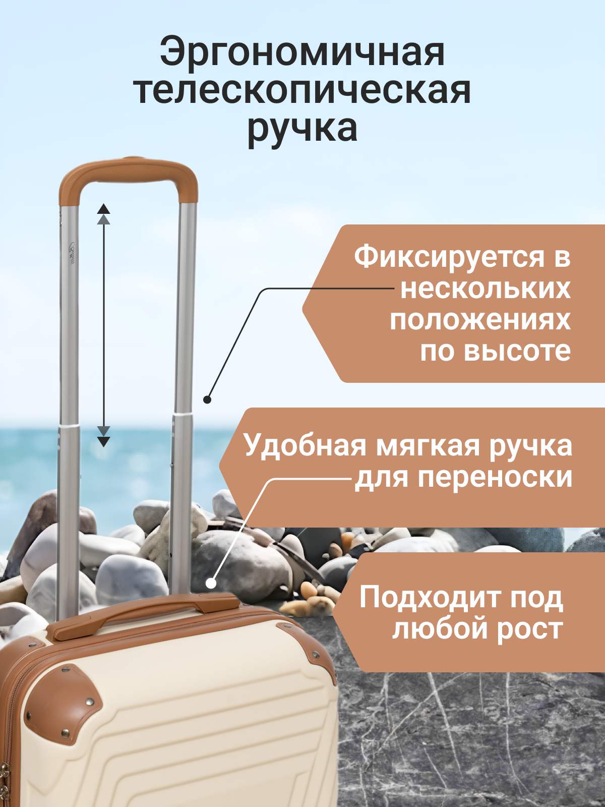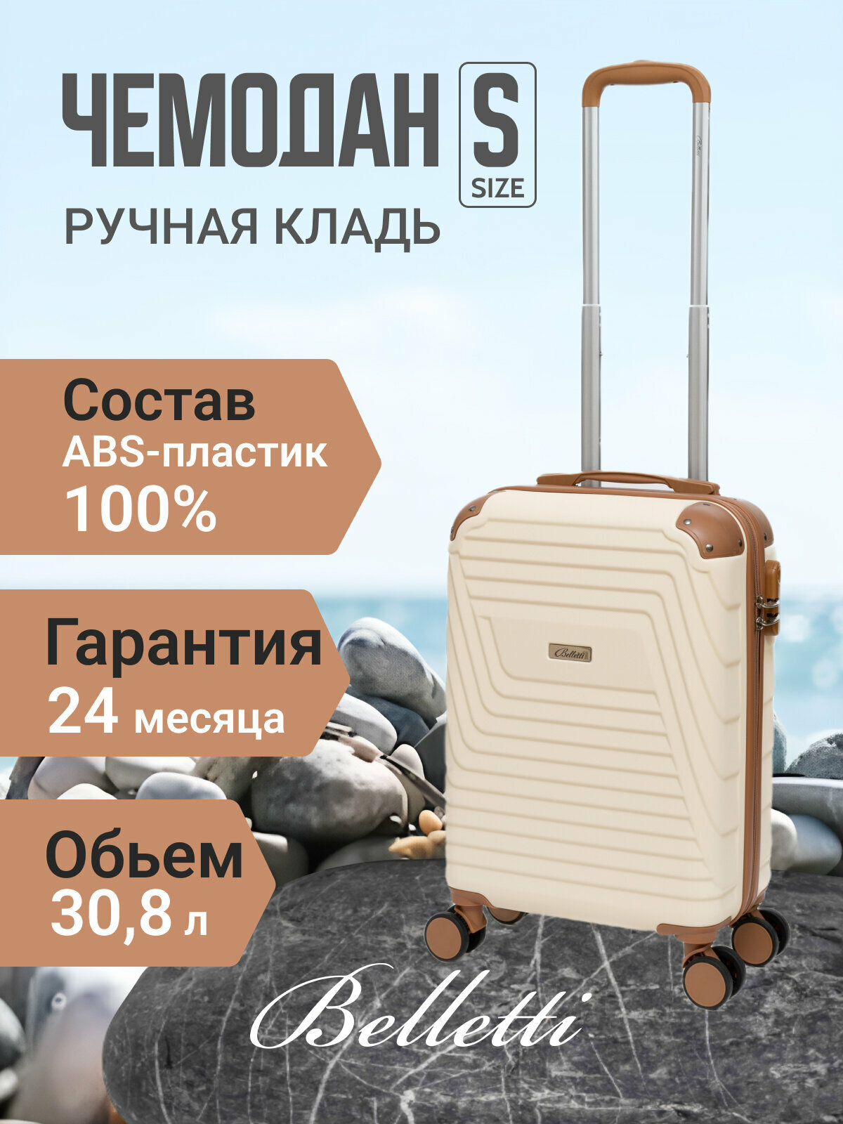 Чемодан на колесах BELLETTI 1030-54см (кремовый/коричневый) S, ручная кладь информация: