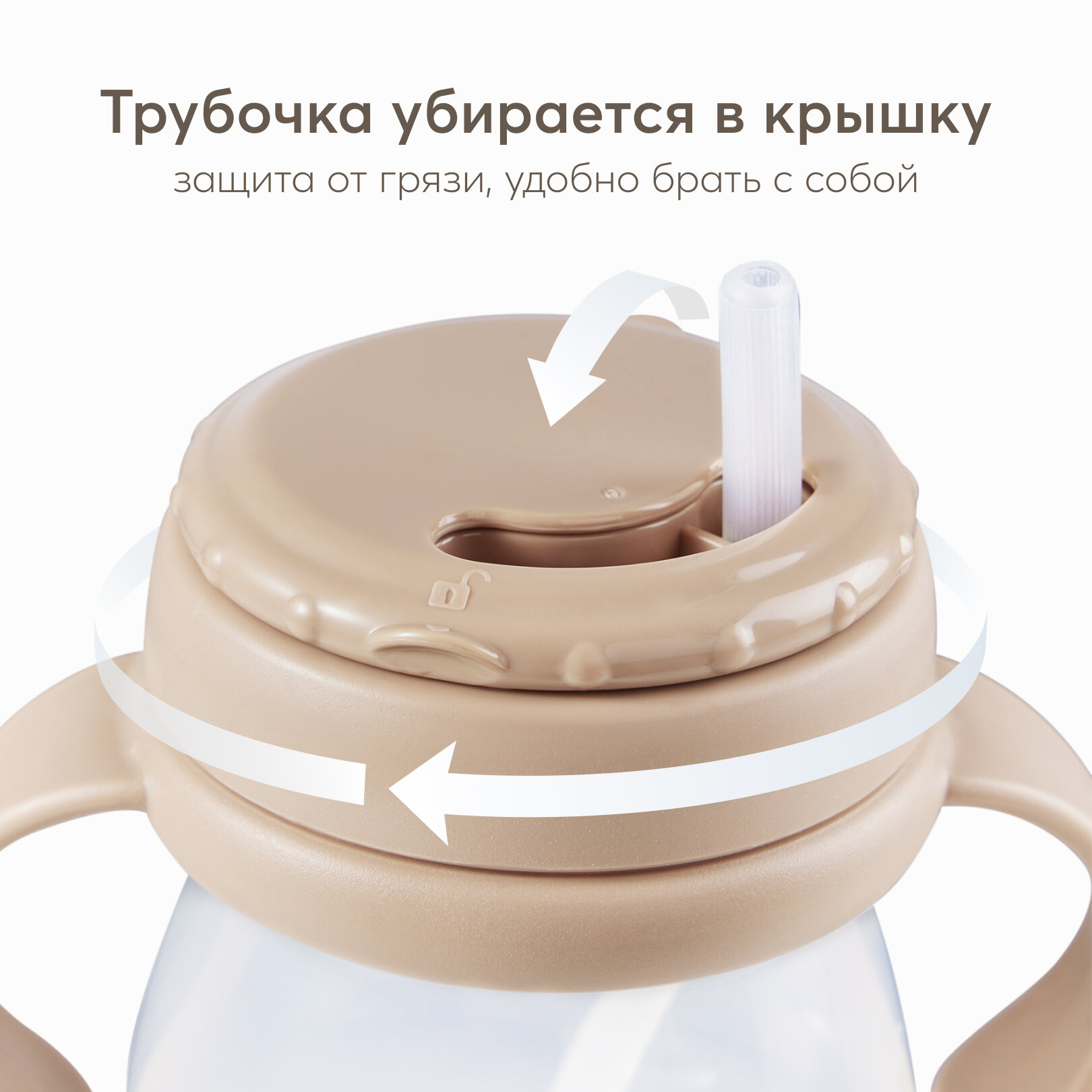 14012, Поильник с трубочкой детский Happy Baby, бутылочка для воды, с ручками для кормления, 250 мл, коричневый информация: