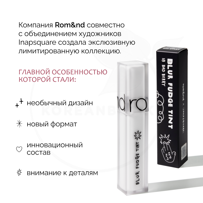 10 цен на Тинт для губ матовый | Rom&nd X Inapsquare Blur Fudge Tint 18 Bad Berry