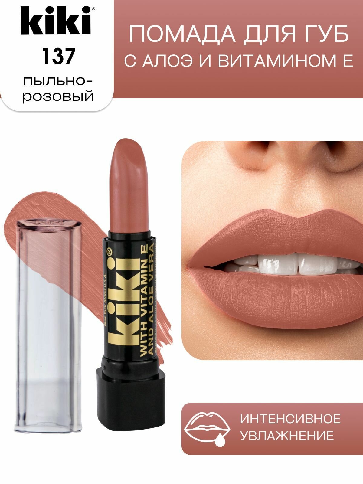 Помада для губ kiki с aloe & vit E тон 137 пыльно-розовый стойкая увлажняющая глянцевая, кики информация:
