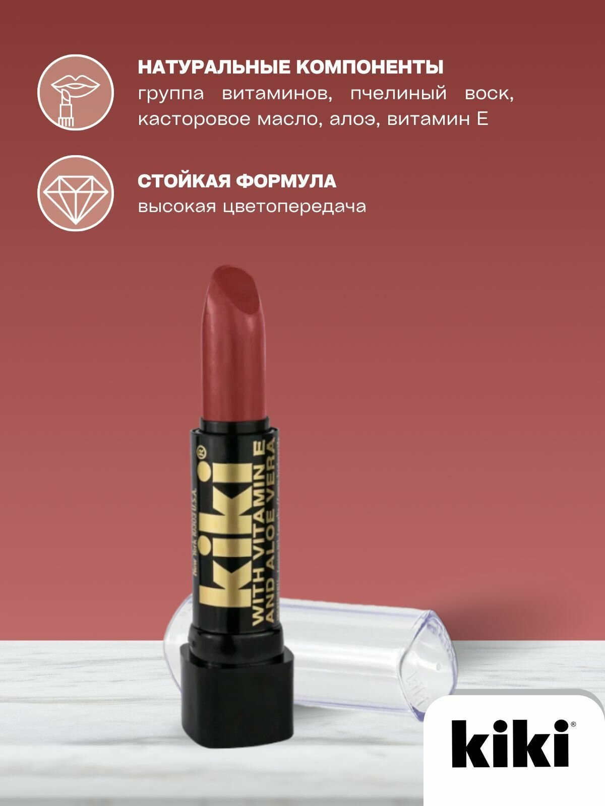 Помада для губ kiki с aloe & vit E тон 133 каштановый стойкая увлажняющая глянцевая, кики информация:
