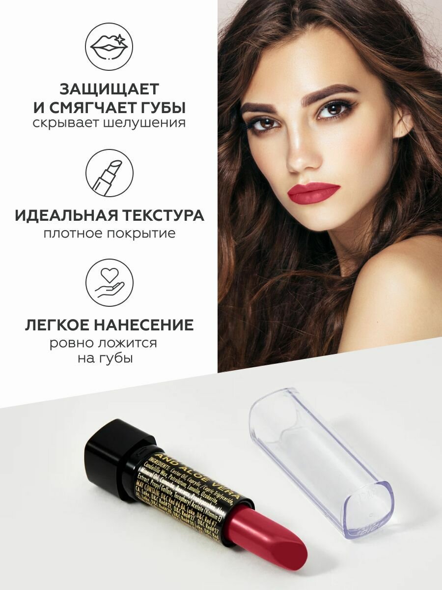 Помада для губ kiki с aloe & vit E тон 066 красный стойкая увлажняющая глянцевая, кики 252 ₽