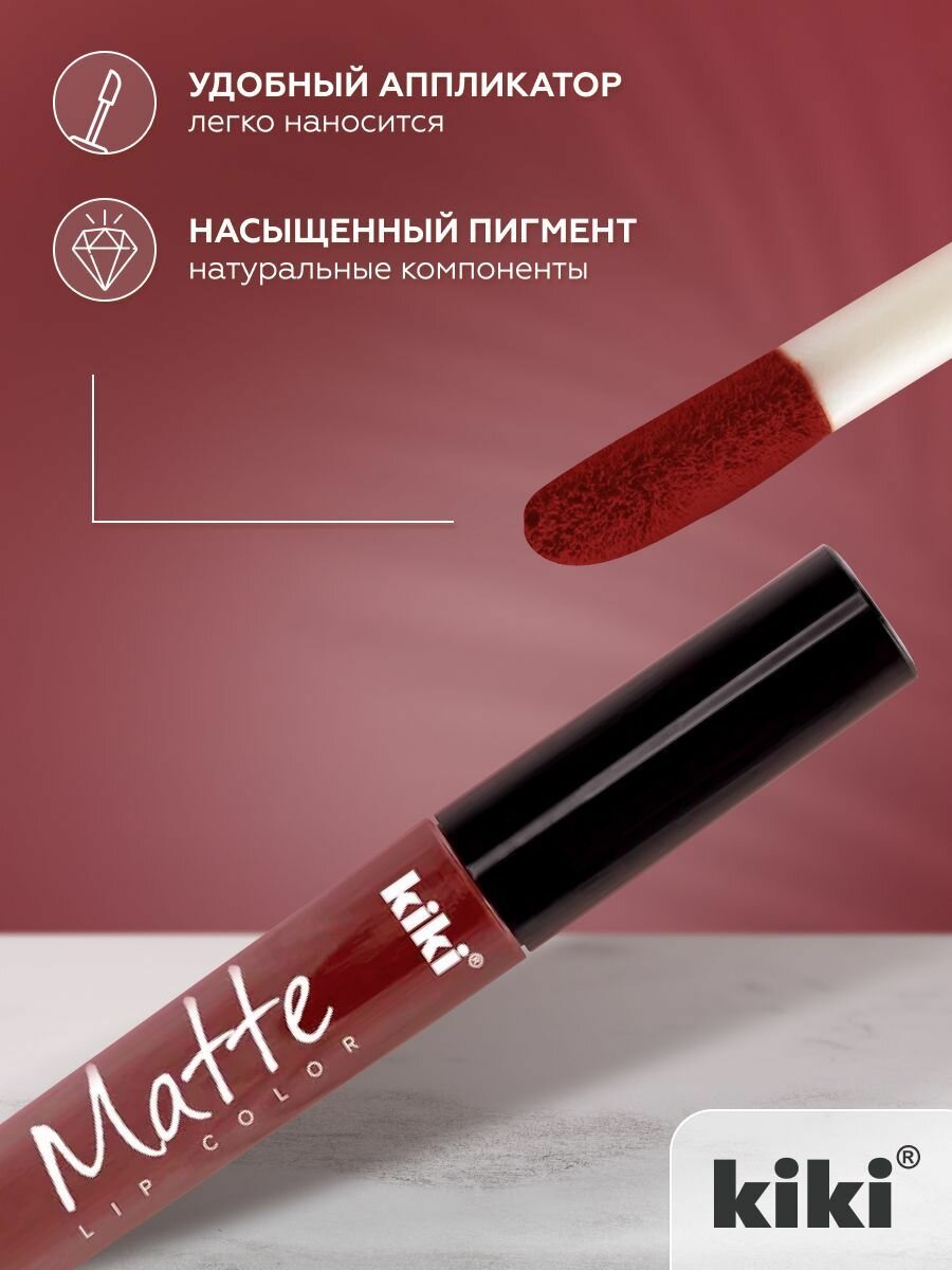 10 цен на Жидкая помада для губ kiki Matte lip color тон 214 винный стойкая увлажняющая матовая с маслом жожоба и витамином Е , кики