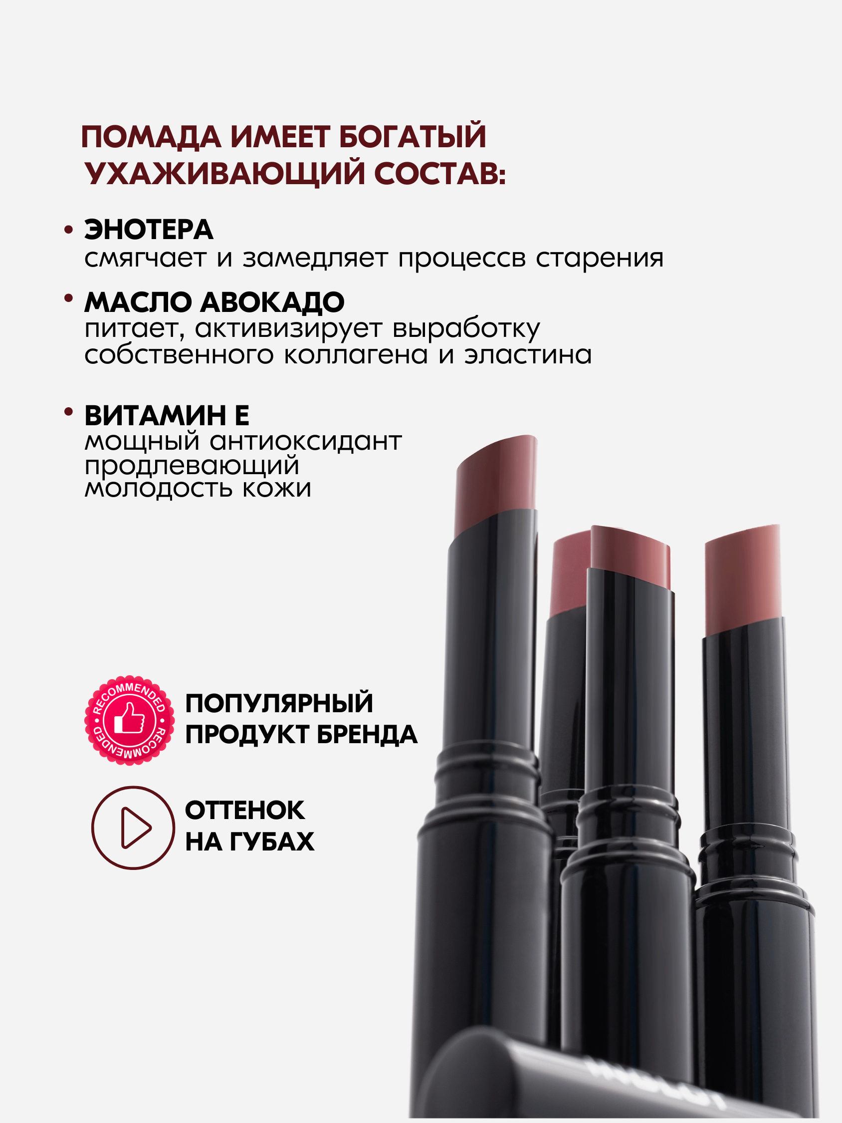 | Способ применения | Наносите помаду, начиная от центра губ и двигаясь к уголкам рта. Для более тонкого нанесения и создания эффекта "зацелованных" губ можно наносить пальчиками, прихлопывающими движениями. |