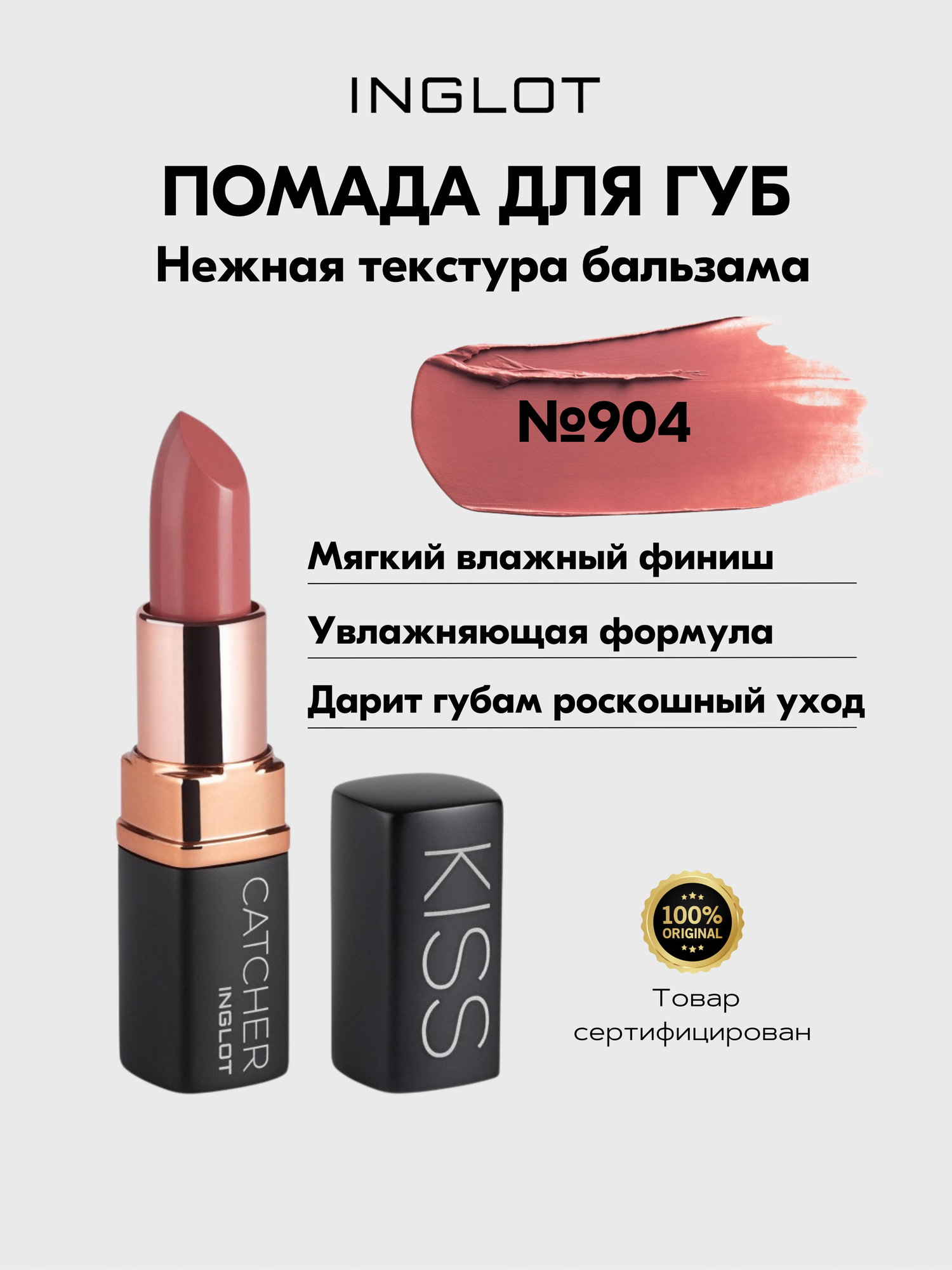 Помада INGLOT мягкая текстура бальзам, увлажняющая с ухаживающей формулой KISS CATCHER №904 PEACH MOUSSE информация: