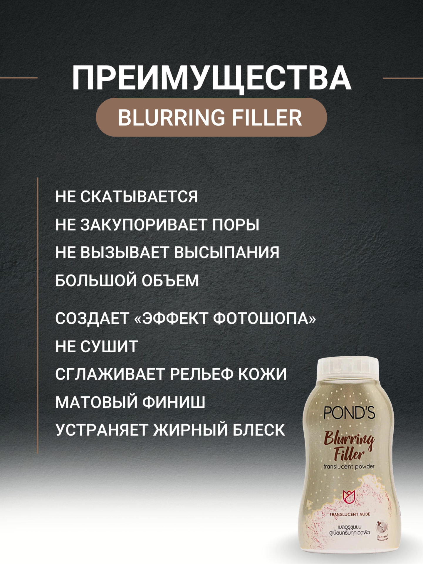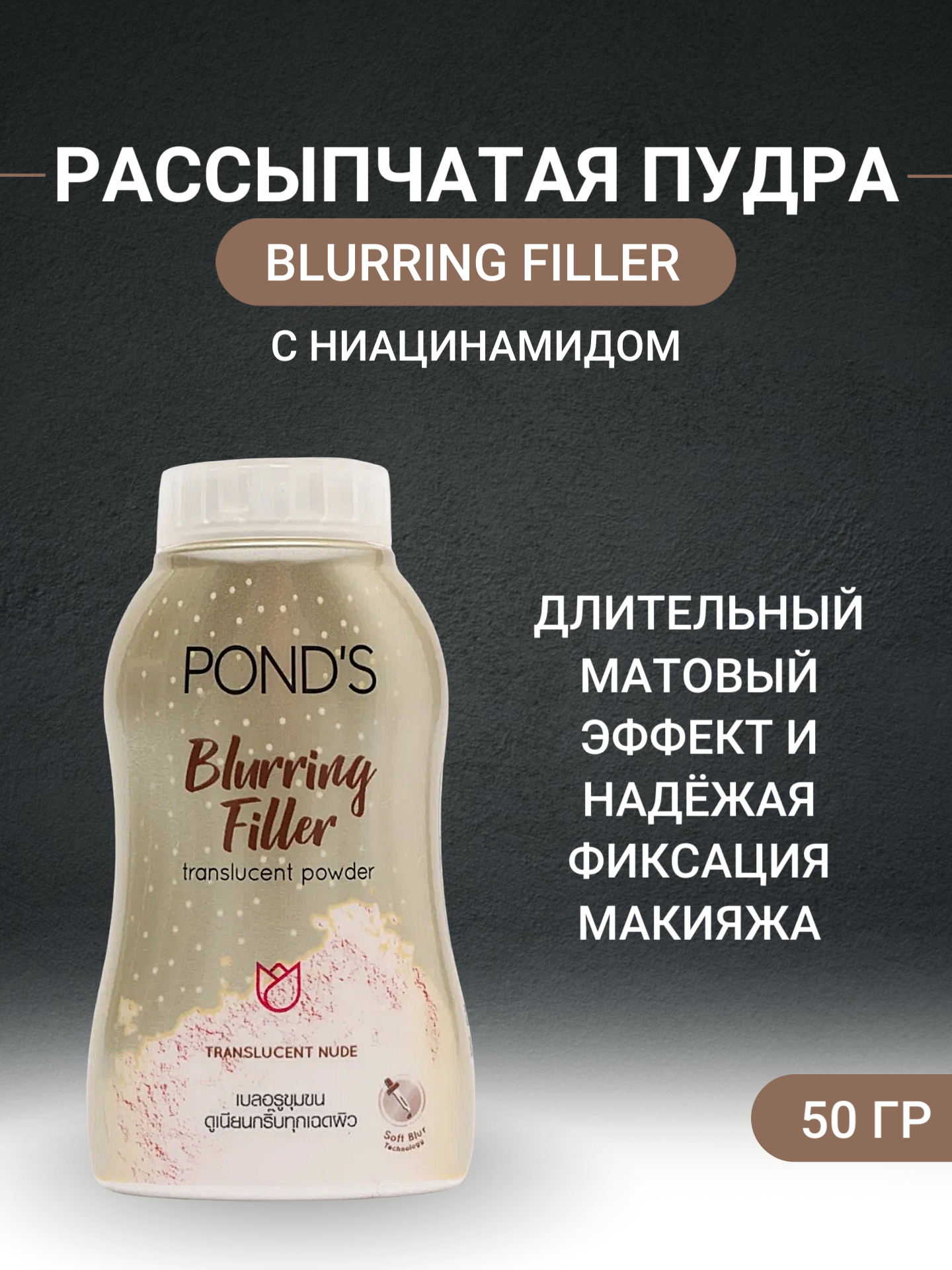 Матирующая пудра с эффектом фотошопа Blurring Filler Translucent Powder POND'S, 50 гр. информация: