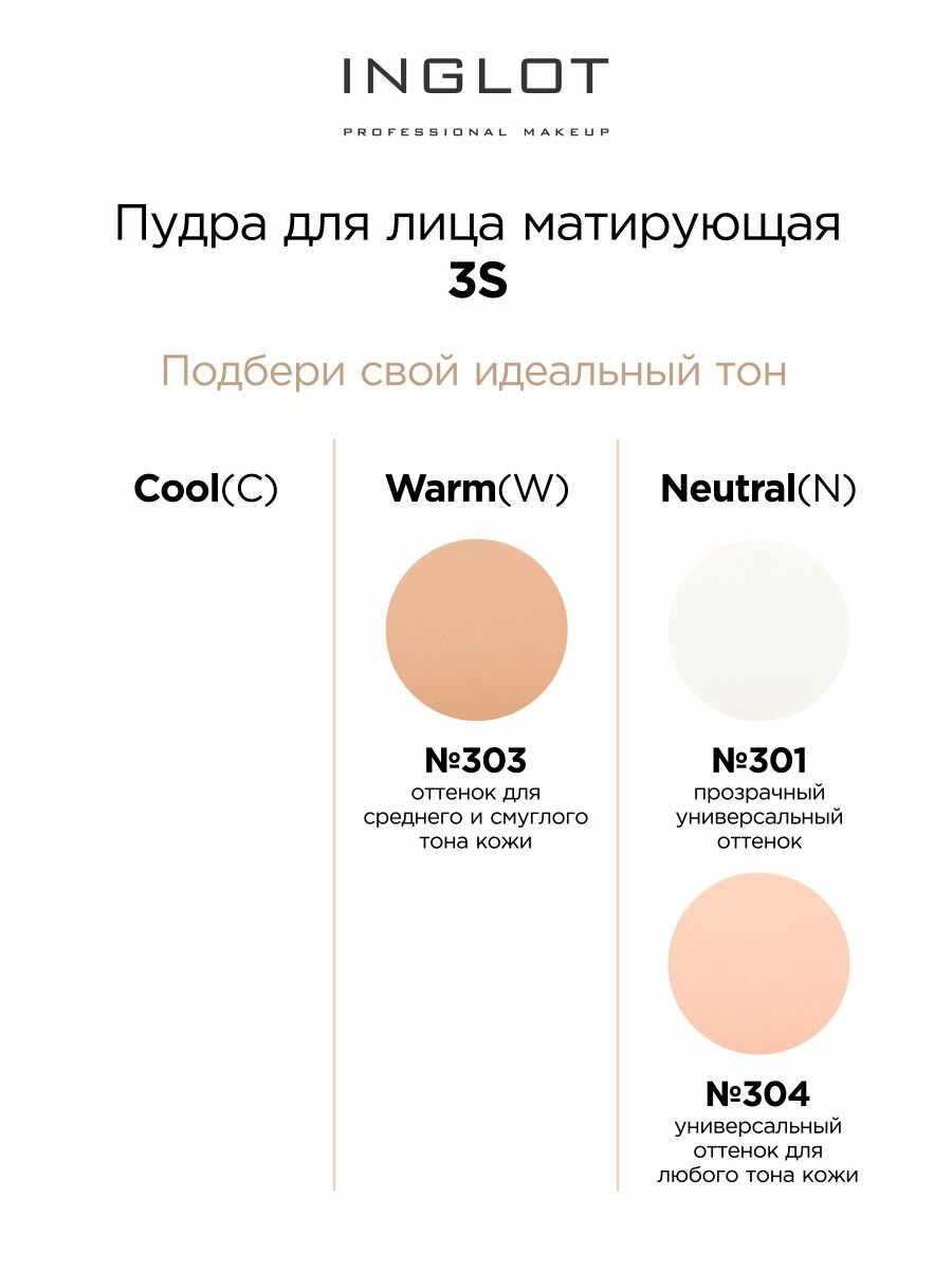 Пудра для лица INGLOT рефил прозрачная, легкая, матирующая, сглаживает поры, фиксирует макияж Freedom 3S №303 информация: