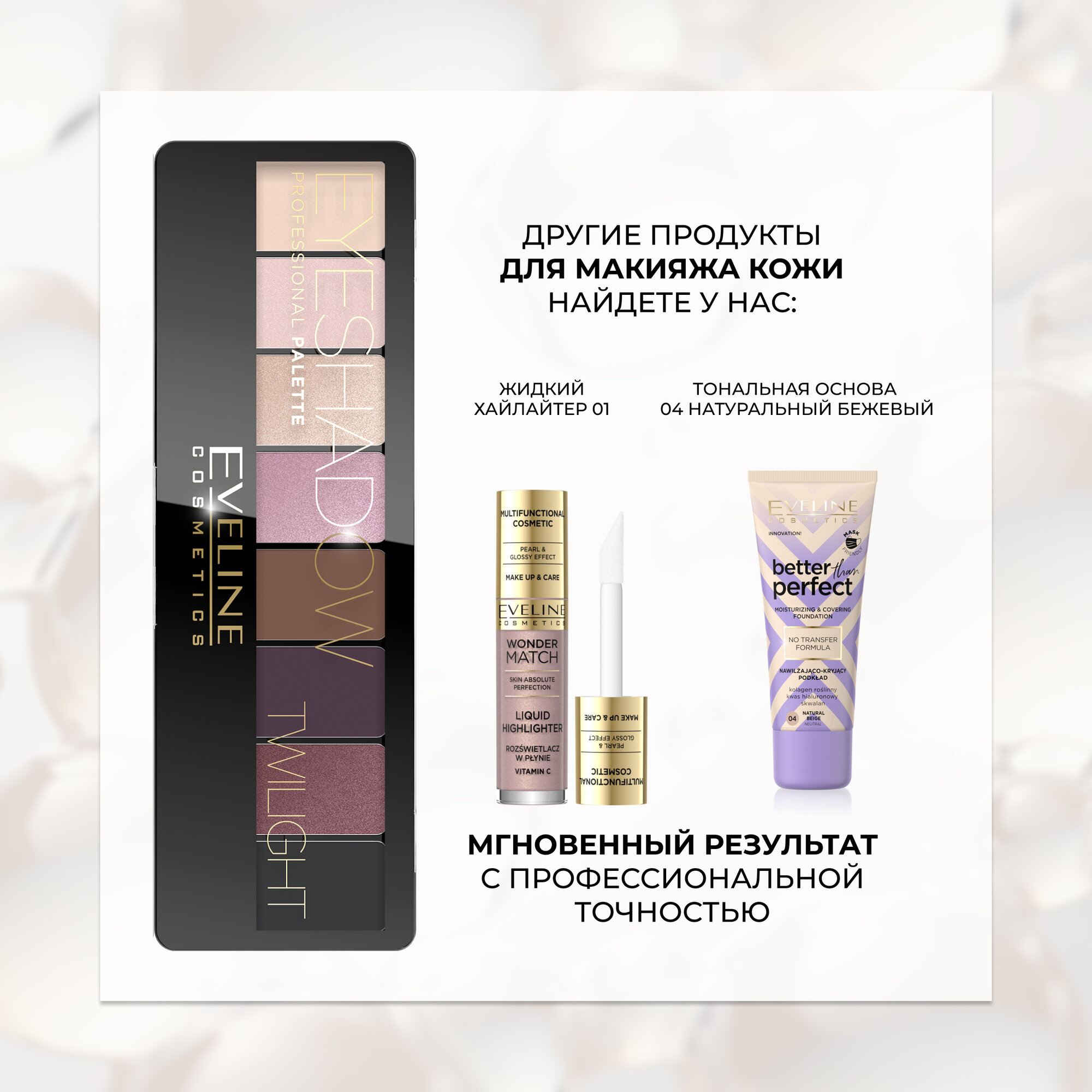 10 цен на Тени для век EVELINE EYESHADOW PROFESSIONAL PALETTE палетка №02-TWILIGHT (8 тонов), 9,6 гр