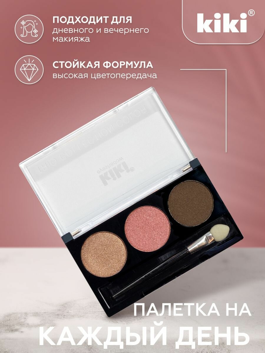 10 цен на Тени для век kiki Shadow Trio Collection Color тон 101 стойкая палетка 3 цвета с аппликатором для растушевки молочный шоколад корица золотисто-коричневый, кики
