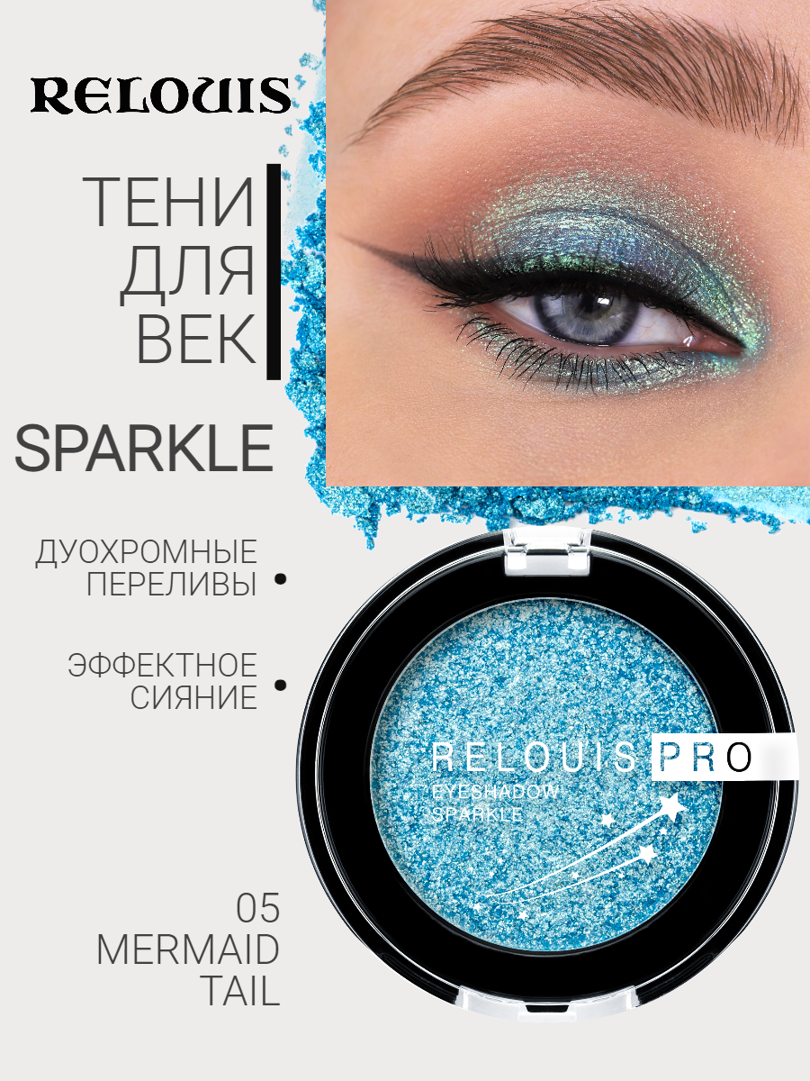10 цен на Тени для век Pro sparkle Relouis 2,9г тон 05 Mermaid tail/Голубо-зелёный дуохром
