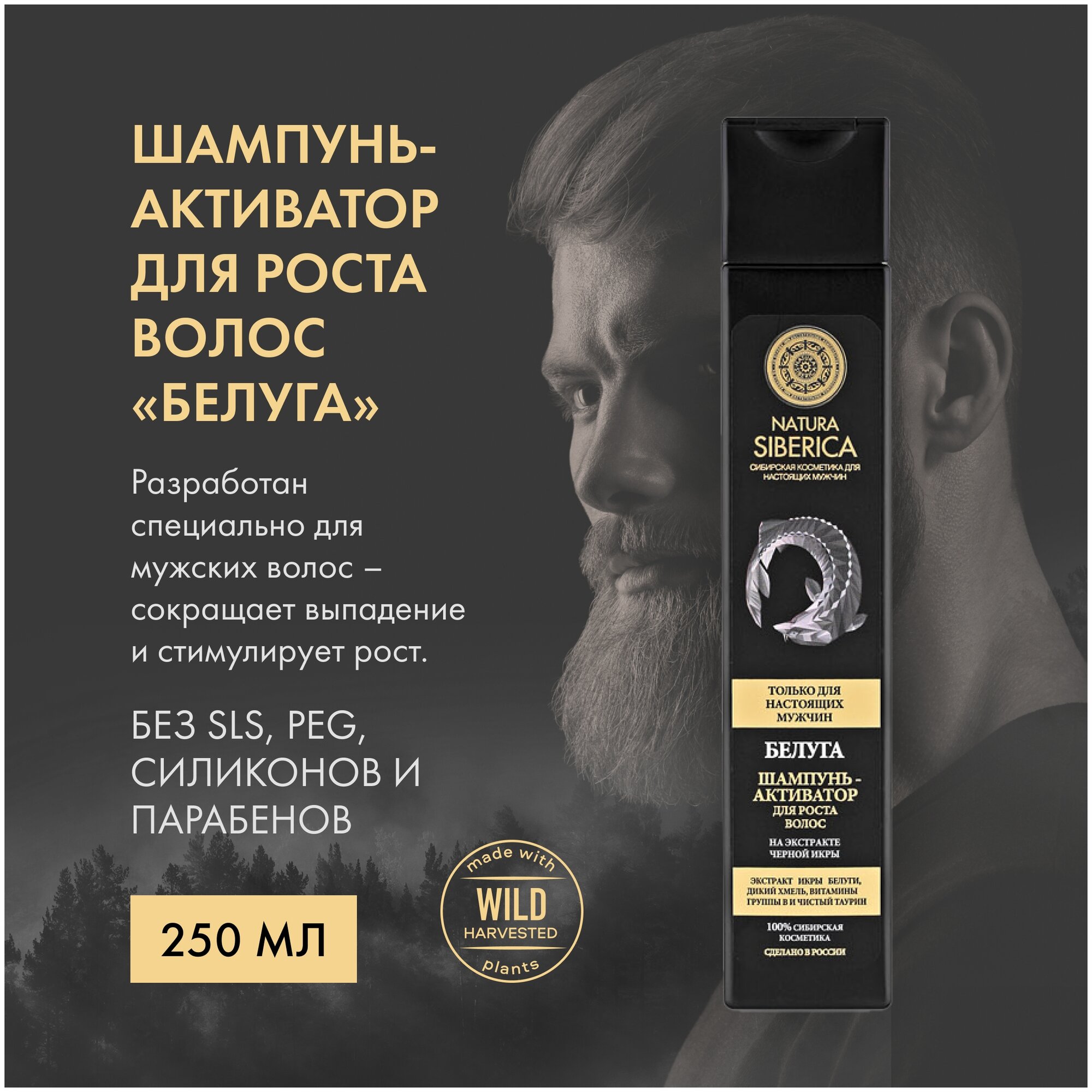 Шампунь для роста волос «Белуга» MEN, 250 мл, NATURA SIBERICA информация: