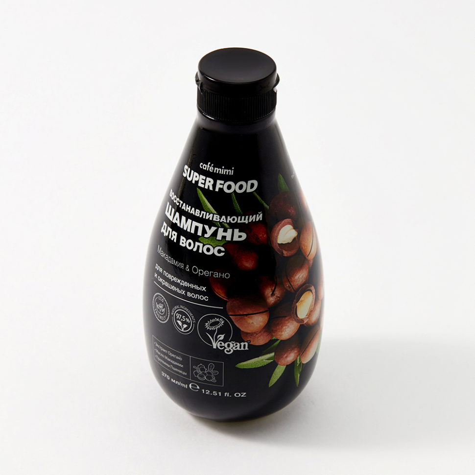 Cafe mimi Super food шампунь Восстановление с маслом макадамии и экстрактом орегано