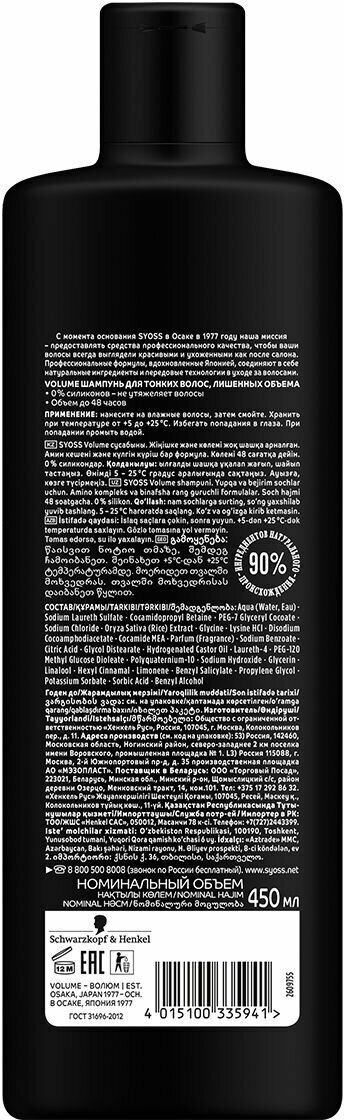 Шампунь для тонких волос, лишенных объема 450 мл информация: