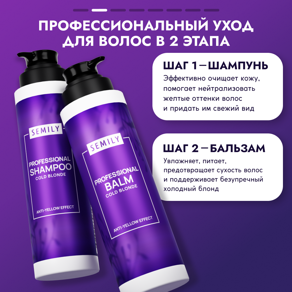 Оттеночные шампунь и бальзам для волос против желтизны Semily, 400+400мл 942 ₽