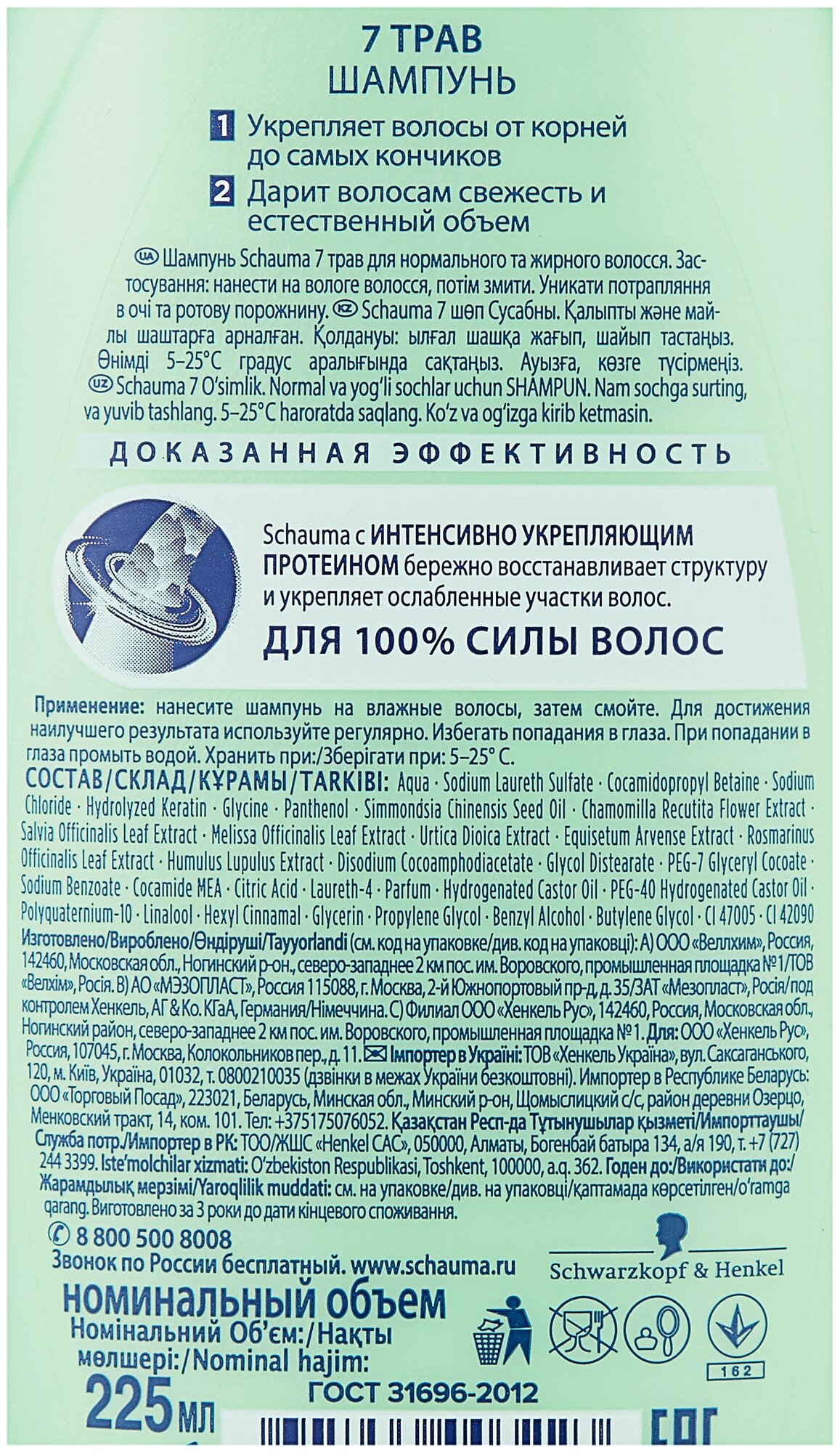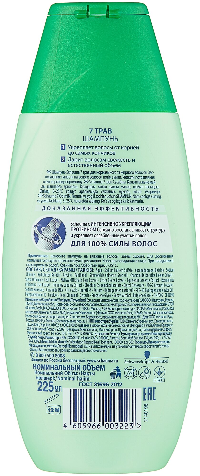 Schauma Шампунь для нормальных и жирных волос 7 трав, 225 мл информация: