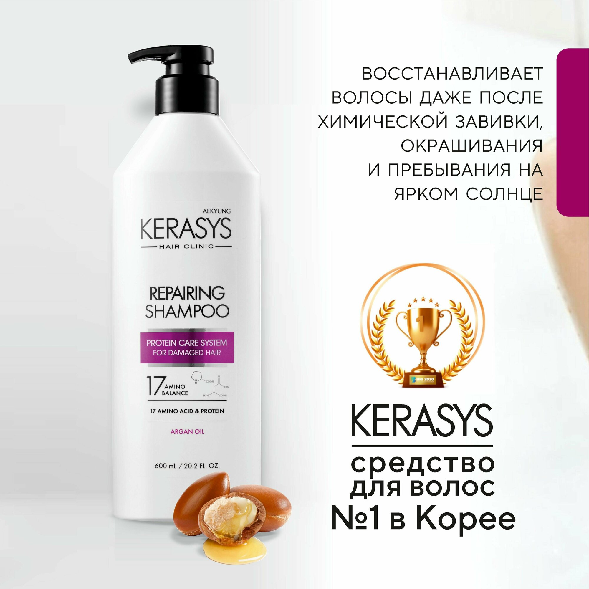 Kerasys Профессиональный Корейский шампунь восстанавливающий 600 мл, протеиновый женский для поврежденных, окрашенных, сухих и ослабленных волос информация: