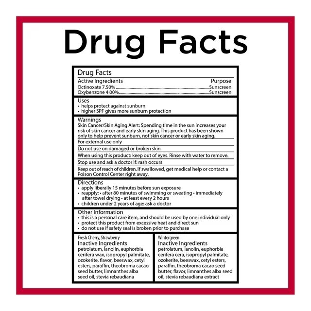 | Состав | Активные ингредиенты: Белый вазелин 41,25%, Неактивные Ингредиенты: ланолин, масло семян какао теобромы, воск молочая цериферного, пчелиный воск, цетиловые эфиры, озокерит, парафин, масло семян лимнантеса альба, камфора, ментол, салициловая кислота, фенол, ароматизатор, ванилин |