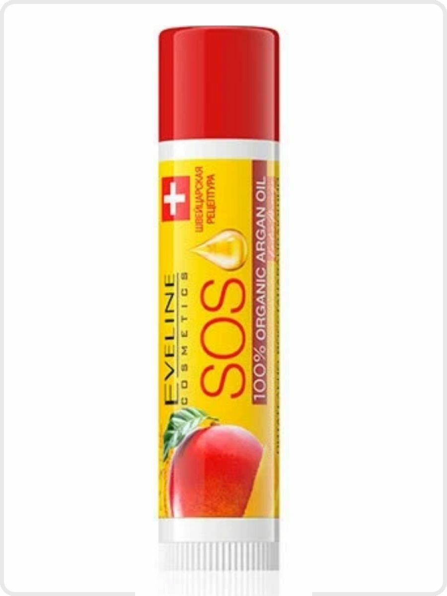 Бальзам для губ Eveline SOS 100% Organic Argan Oil питательно-восстанавливающий Exotic Mango