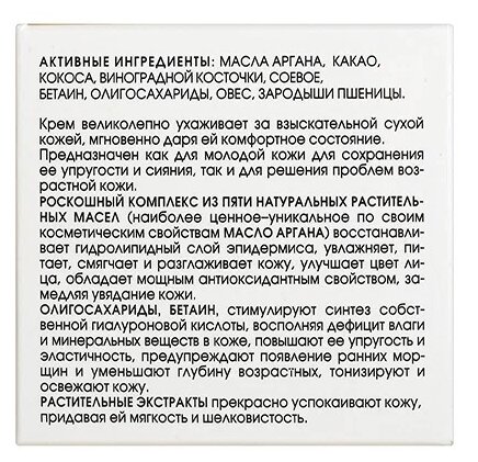 Крем для сухой кожи с маслом аргана. Дневной/вечерний уход, 50 мл, Kora информация: